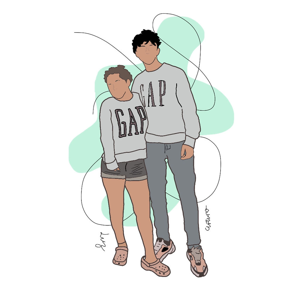 Dibujo digital pareja tipo líneas + color